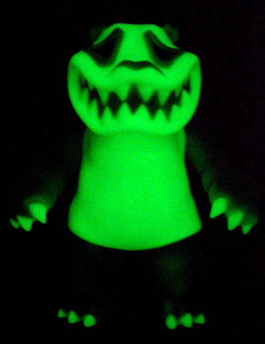 暗闇では塗装箇所が抜けて、発光箇所がスカルの様な印象。